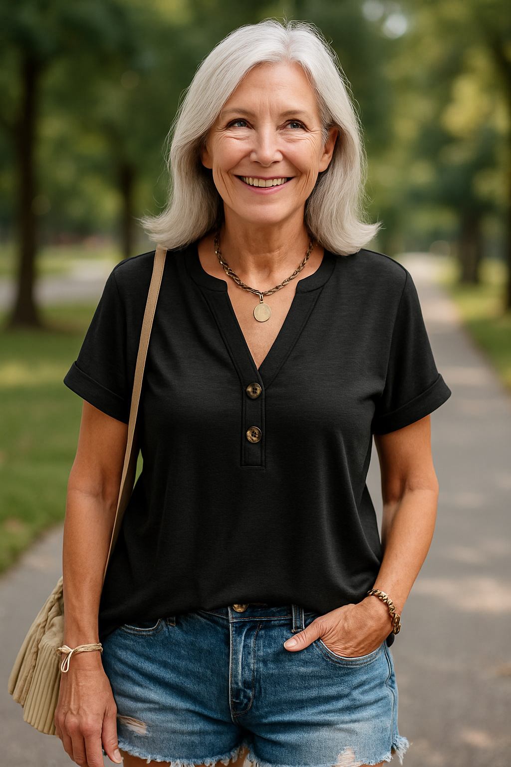 - Polyvalence Intemporelle : Avec sa patte de boutonnage chic et son ourlet de longueur tunique, la blouse Merisa se marie parfaitement avec des jeans, des shorts ou des jupes, disponible dans des teintes classiques pour compléter toute garde-robe.