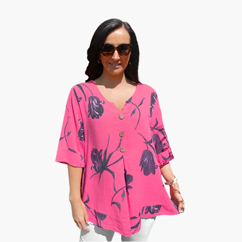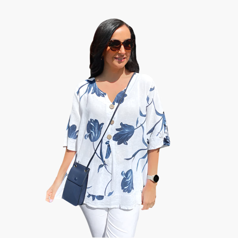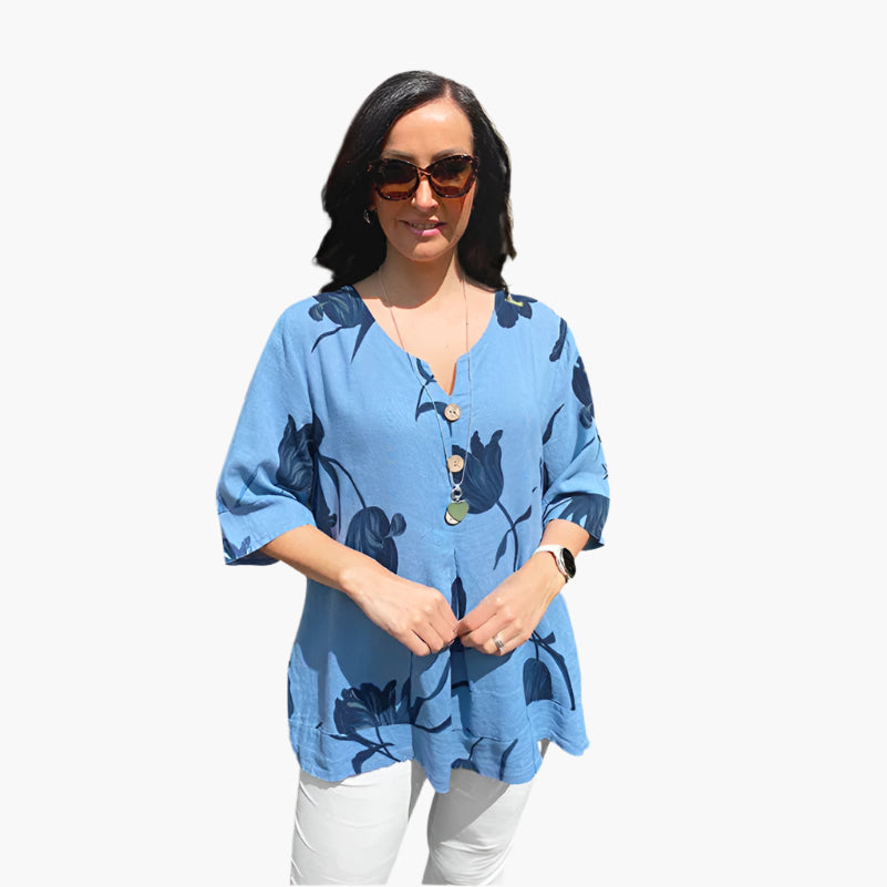 Entrez dans la saison du soleil et de la chaleur avec le haut Alyssa Haut Ample à Col en V. Ce haut offre à la fois confort et polyvalence, idéal pour une journée pleine d'aventures, des matins ensoleillés aux soirées fraîches. Élégant sans effort et incroyablement confortable, c'est l'ajout parfait à votre garde-robe de printemps et d'été.